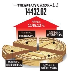 昨日,国家统计局深圳调查队发布深圳居民收支与生活状况调查(一体化住户调查)数据。据显示,2017年一季度深圳居民主要收支保持稳定增长。
