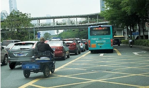 时间:4月24日上午10时30分,地点:深南大道南新路口,网友“流行坎止”:骑着三轮车在马路中间与机动车抢道,这位大爷牛啊,就算您不怕蹭掉奔驰、宝马的车漆赔钱,难道不怕被汽车怼一下,自己缺根胳膊、少条腿?