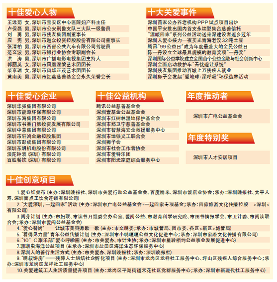 年度“十佳爱心人物”出炉 2017深圳关爱行动首度推出“十大关爱事件”“十佳公益机构”“年度推动者” 深圳新闻网