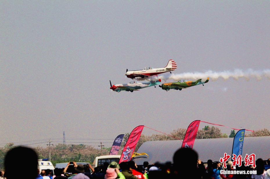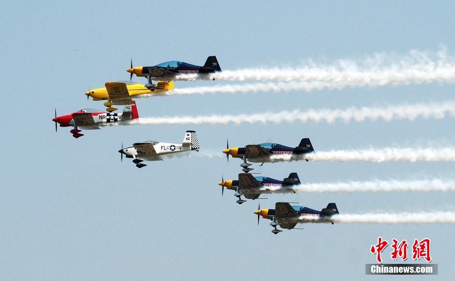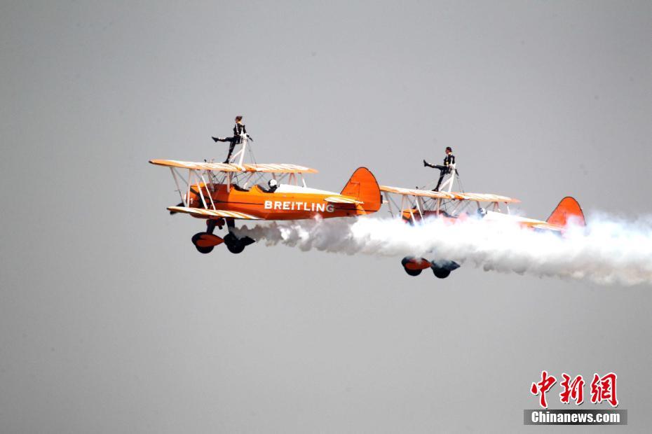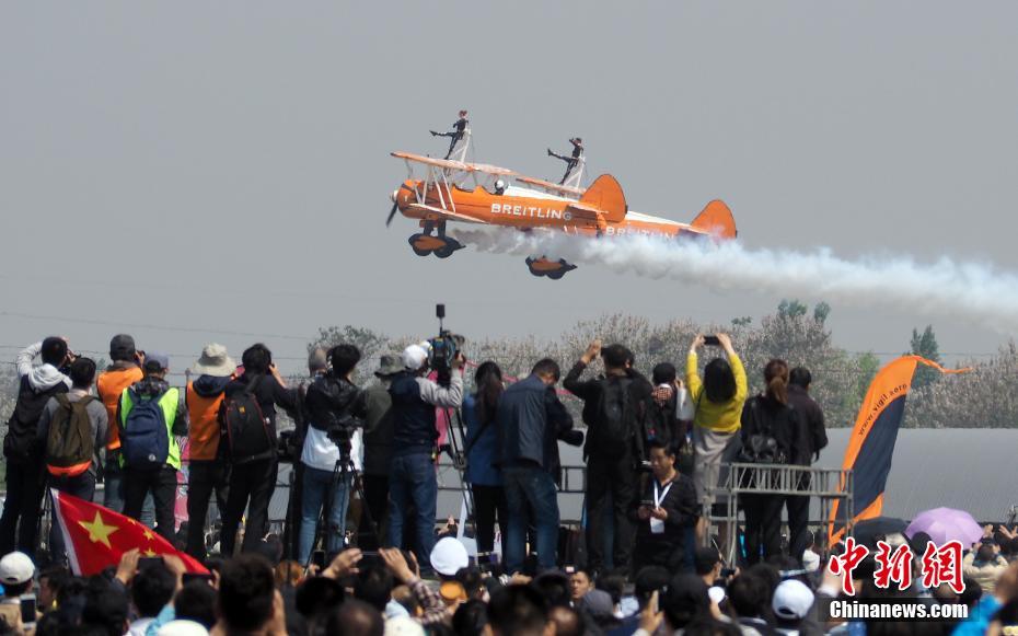 4月27日,2017郑州航展在河南郑州上街机场开幕,从世界各国40多支特技飞行队遴选的14支顶级飞行队,上演了一场场别开生面的空中特技秀。中新社记者王中举 摄