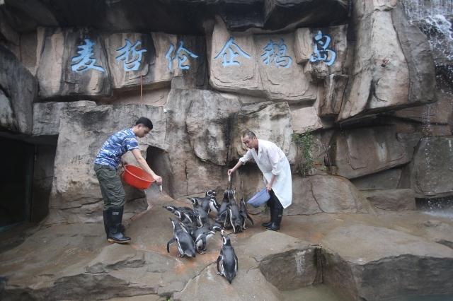 深圳野生动物园新引入的10只麦哲伦企鹅正式与游客见面,该园5只小长颈鹿也集体亮相。
