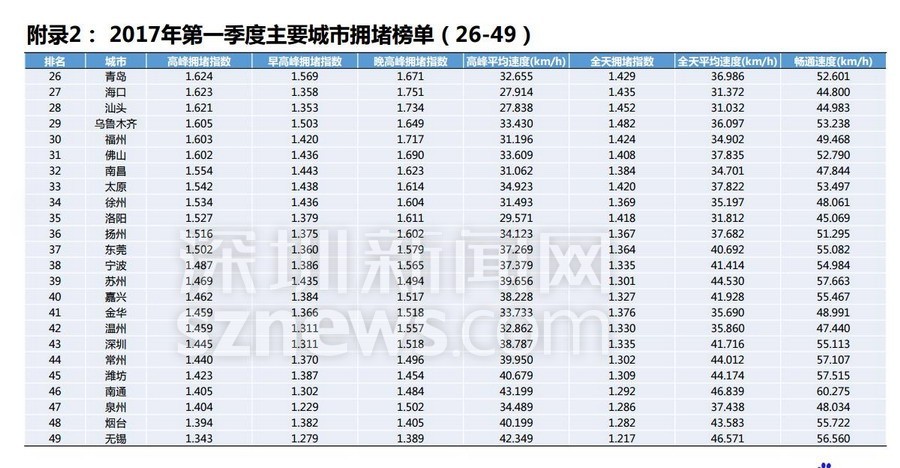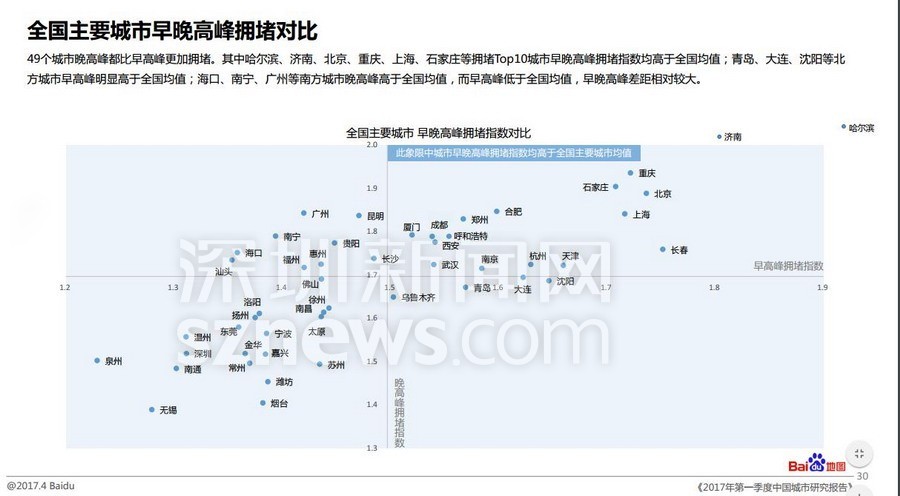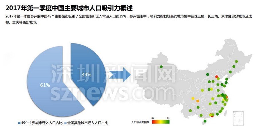 近日,百度地图发布了《2017年第一季度中国城市研究报告》,选取了中国49个主要城市,通过大数据客观反映城市人口吸引力和城市交通的状况,深圳成为最具人口吸引力的城市。