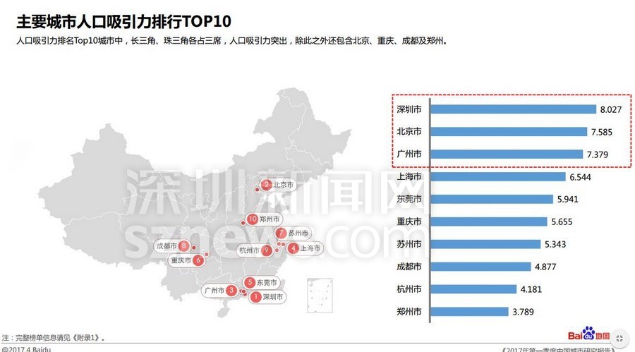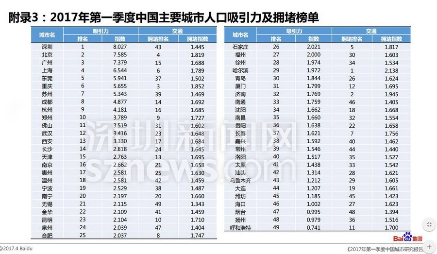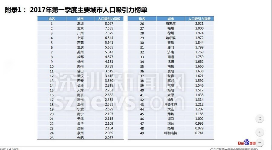 百度地图中国城市研究报告出炉:深圳人口吸引力超北京