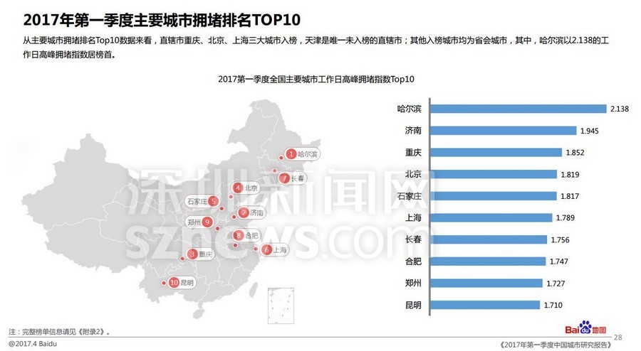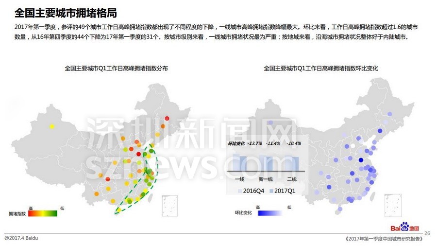 深圳新闻网讯 近日,百度地图发布了《2017年第一季度中国城市研究报告》,选取了中国49个主要城市,通过大数据客观反映城市人口吸引力和城市交通的状况,深圳成为最具人口吸引力的城市。以下为报告全文: