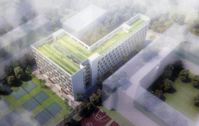 宿舍楼鸟瞰图。