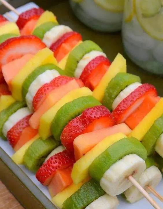 在阳光明媚的户外吃五彩缤纷的水果,好心情一定会加倍的。对于带水果,可以选择像这样用竹签串起来。这样吃起来不太会脏到手哦!