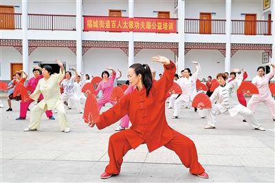 太极拳有着极高的健身价值和丰富的文化内涵,是一种大众所喜爱的强身健体、修身养性的健康运动,近年来逐渐被广大群众所喜爱。刘彩艳、张进军、赵常春、张全会、郭勇招、饶丽芳等多名太极好手在不自觉中已成为福城街道太极文化的公益传播者。