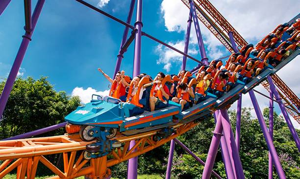 说到冒险体验,怎能不提过山车!广州长隆欢乐世界最具有标志性的游乐设施,就是号称“全球过山车之王”的垂直过山车,它是世界上最高、最快、垂直下落距离最长的垂直过山车之一。此外,长隆欢乐世界还有十环过山车、摩托过山车、飞马过山车等刺激惊险又各具特色的过山车。