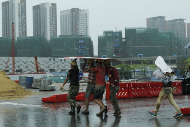 昨暴雨倾盆 前海工地突然冒出满地“披风侠”