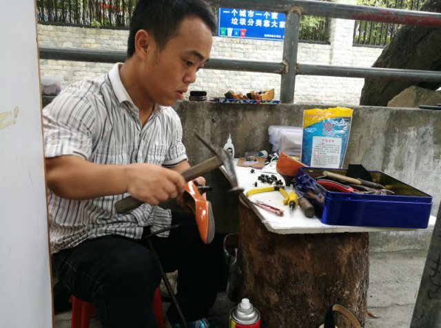 汪苏明是浙江衢州人,2009年来到深圳罗湖区成为一名修鞋匠,至今已经在深工作8年,他靠着精湛的手艺和乐观的精神赢得了附近居民的尊重与赞美。汪苏明的另一个身份是,身高只有1米3的侏儒症患者。