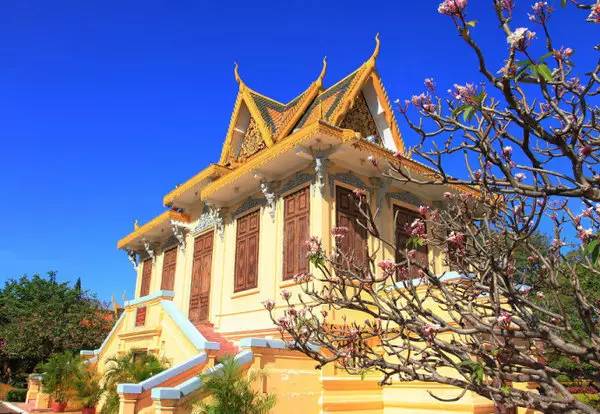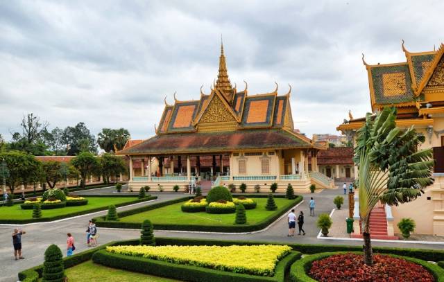 金边皇宫是一组金色屋顶、黄墙环绕的建筑,银宫最为华丽,地面用4700多块镂花银砖铺就。金光璀璨,令人流连忘返。