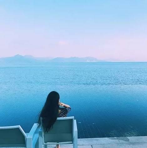 桌椅的白色,与海天同一的蔚蓝是绝配,