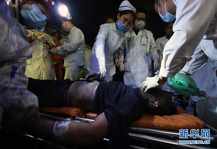 5月8日凌晨1时左右,医务人员正在对被救人员实施现场治疗。新华社记者 李尕 摄