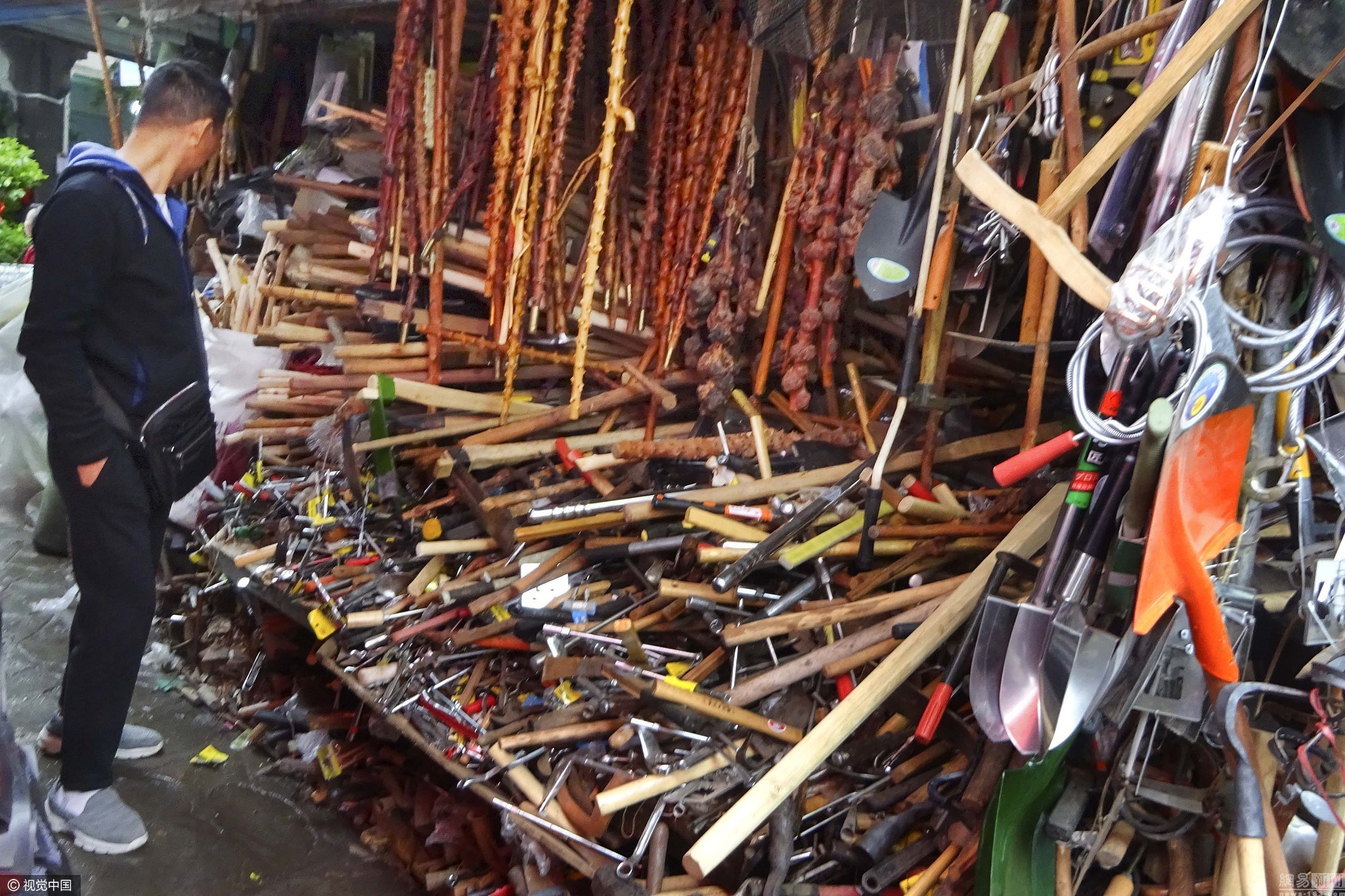 2017年5月7日,,贵阳市南明贵纲花鸟市场,一家五金杂货铺。这家五金杂货铺虽然只有几平方米,但从地下到房顶,基本是塞得空间甚微。视觉中国供图,谢绝转载