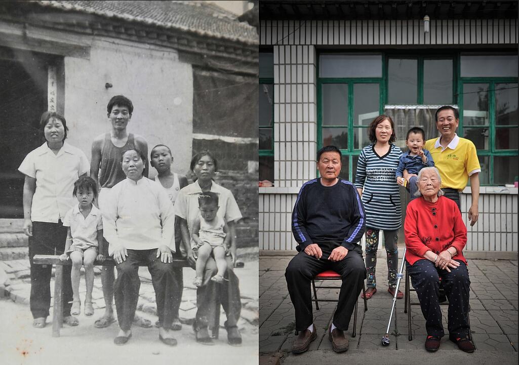5月4日,天津,姜绍臣一家在自家院子里,照着30多年前的黑白老照片,拍下一张合影。往后,这样的场景将成为历史。