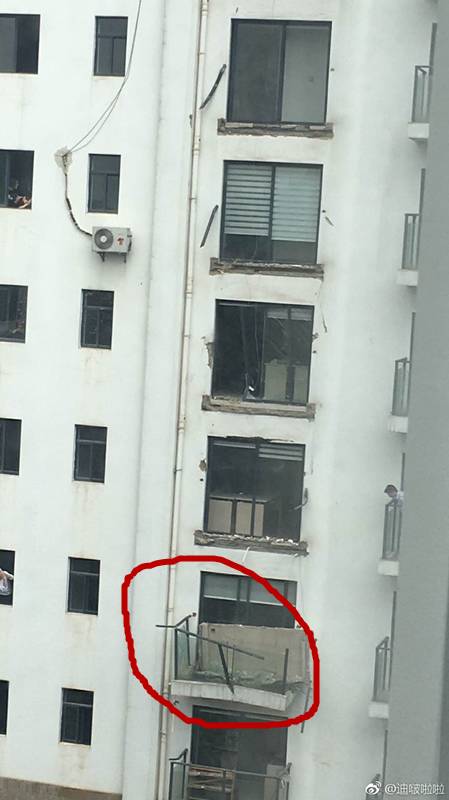 据网友@迪啵啦啦提供的照片显示,该小区某栋疑7楼以上的5户人家的阳台齐刷刷地掉落,对比旁边还存在的阳台,缺失的部分格外显眼。网友表示,所幸此次事故未造成人员伤亡,但从图片上来看阳台没有钢筋,她质疑这样的房子你敢住吗?
