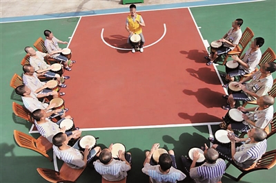 出狱后,龚乐以义工的身份再次回到监狱为服刑人员做手鼓培训。 深圳晚报记者 李晶川 摄