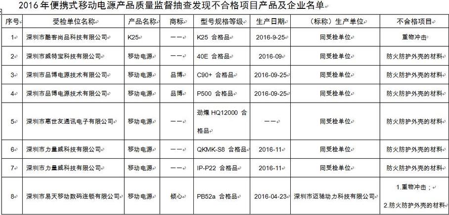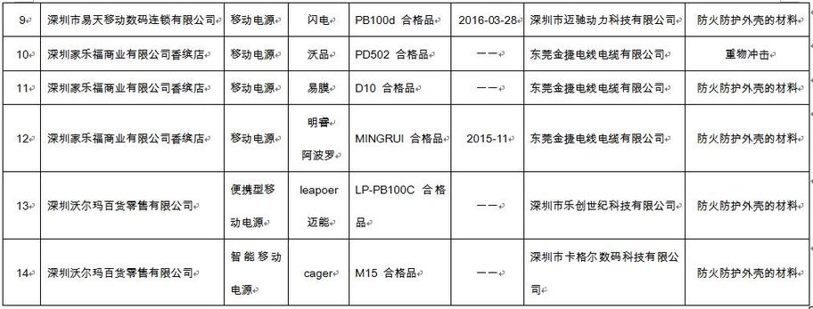 14日,记者从深圳市市场监督管理委员会获悉,市市场监管局组织发布了有关2016年便携式移动电源产品质量监督抽查结果的报告,抽查发现查处14批次不合格,不合格产品存在起火、爆炸的危险,严重危害消费者的生命和财产安全。