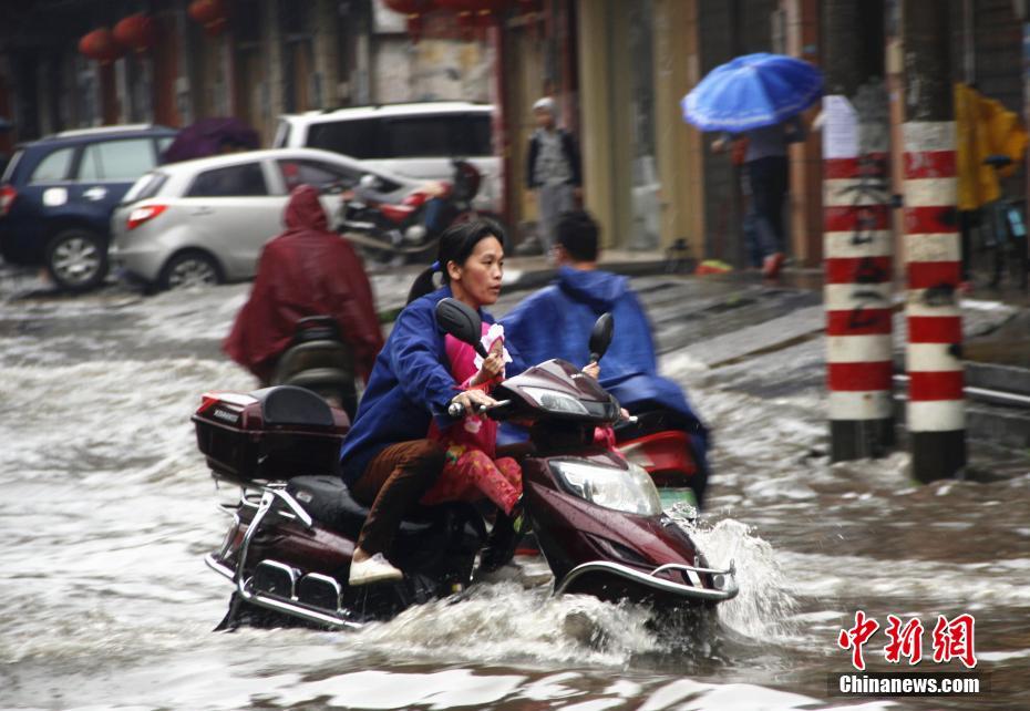5月14日夜间至15日清晨,广西遭暴雨侵袭,柳州市柳江区拉堡镇利国路路段内涝严重,街道似河流一般,民众需淌水出行。