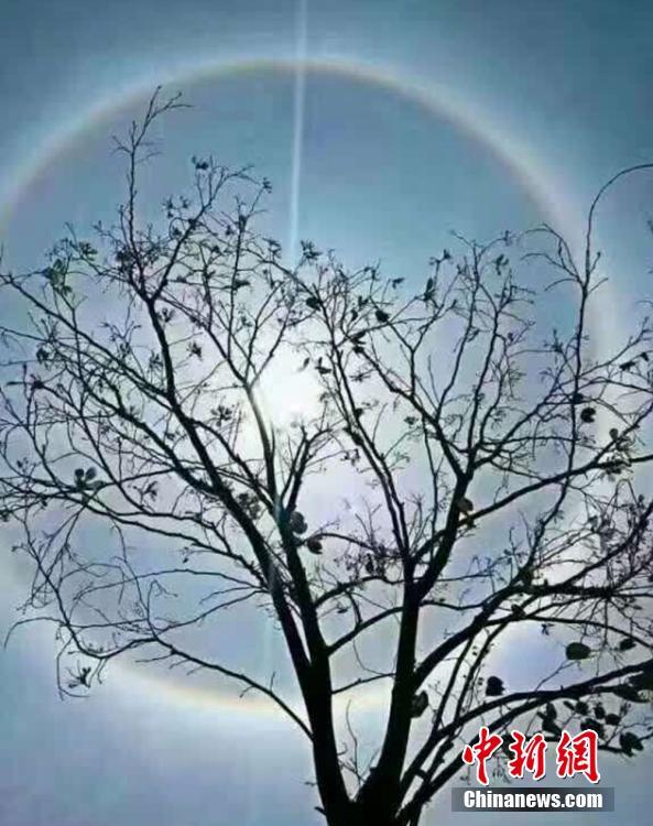 5月16日中午开始,四川自贡市富顺、荣县等地相继出现日晕奇观,引得市民争相拍照留念。涂光葫 摄