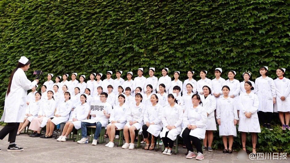 2017年5月16日是四川省南充卫生学校2017届学生拍毕业照的日子,有19个护理班近千名学生毕业,仅11名男生,有16个班级都是清一色的女生。