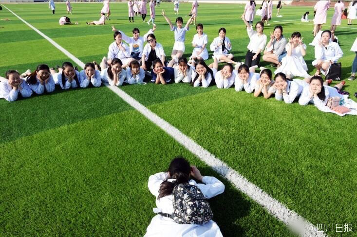 2017年5月16日是四川省南充卫生学校2017届学生拍毕业照的日子,有19个护理班近千名学生毕业,仅11名男生,有16个班级都是清一色的女生。