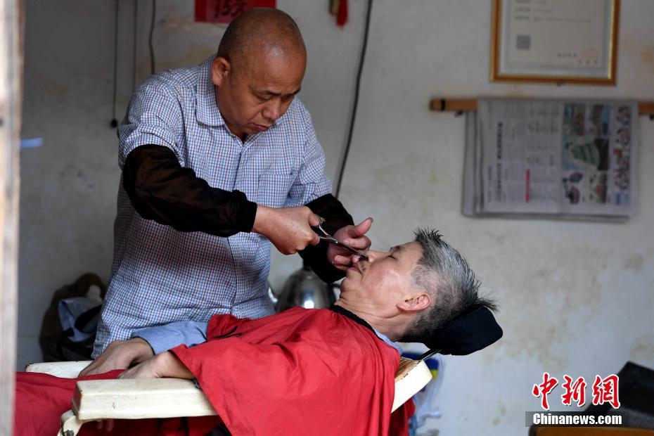 传统的理发手艺。 王东明 摄