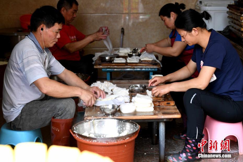 纯手工制作莫西长豆腐。 王东明 摄