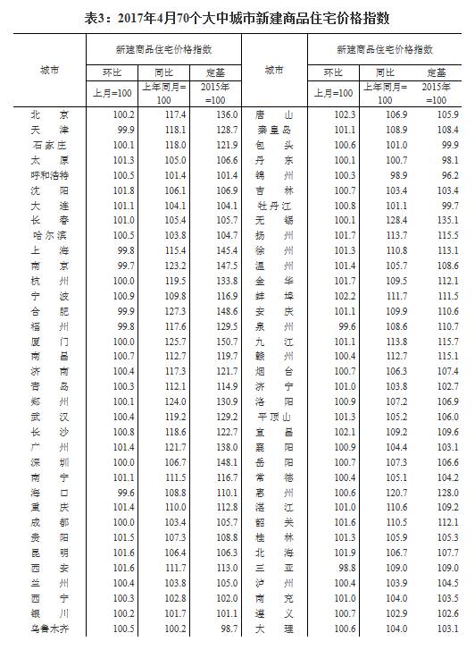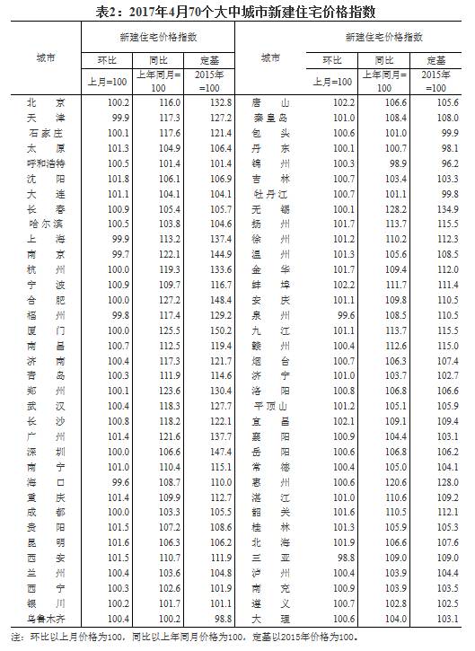国家统计局城市司高级统计师刘建伟对2017年4月份70个大中城市住宅销售价格统计数据进行了解读。