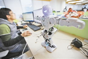 工程师正在测试在春晚跳舞的深圳产优必选机器人。