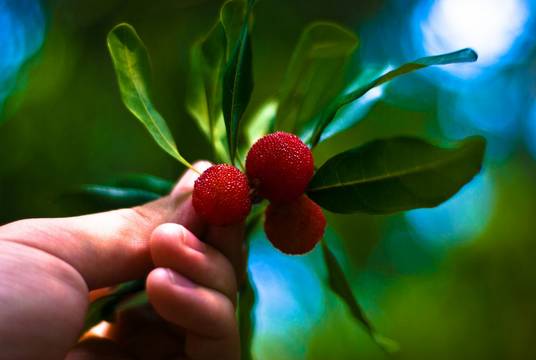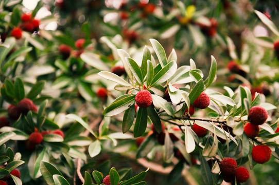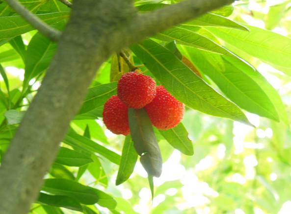 在林中,随处可见硕果累累的杨梅挂满枝头,
