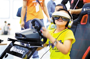 柔宇科技迅速成长为创新型龙头企业。在今年4月9日举行的第五届中国电子信息博览会上,一个小朋友在柔宇科技展位开心地体验移动影院。深圳商报记者钟华登 摄