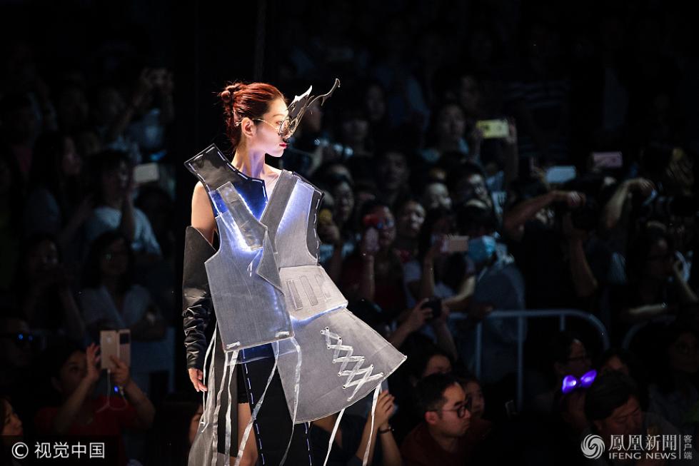 5月20日晚,2017南京艺术学院毕业展演“嘉年华”露天时装秀在该校南大门上演,轮番登台的模特尽情展示设计学院毕业生们的服装设计作品,完美诠释了经典与流行、传统与现代的碰撞。来源:中国新闻网视觉中国