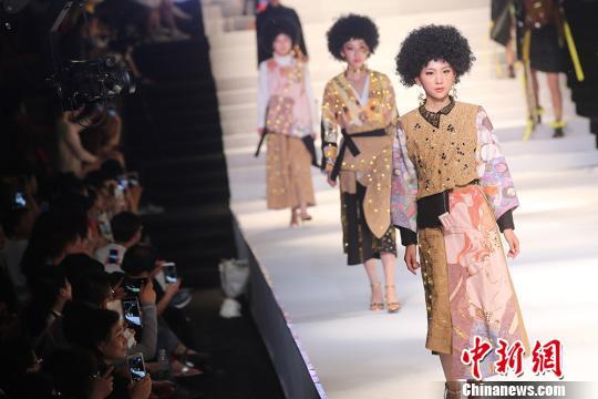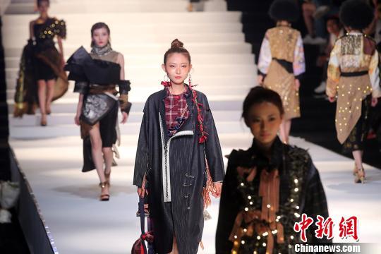 5月20日晚,2017南京艺术学院毕业展演“嘉年华”露天时装秀在该校南大门上演,轮番登台的模特尽情展示设计学院毕业生们的服装设计作品,完美诠释了经典与流行、传统与现代的碰撞。来源:中国新闻网视觉中国
