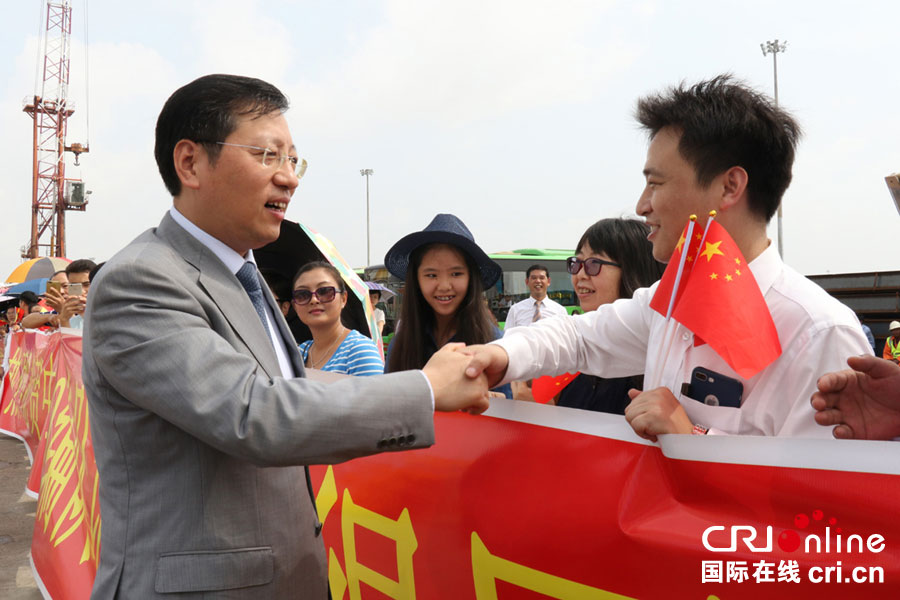 中国驻缅甸大使洪亮与送行代表握手(洪荃诠 摄)