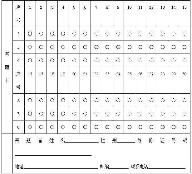 4、答题卡答题,请将正确答案所代表的圆圈涂黑,并写清地址、姓名及身份证号码,于2017年6月8日前(以邮戳为准)将答题卡(请贴在信封背面)寄到深圳上步中路1023号市府二办附楼113室,邮编:518028,联系电话:0755-88134876。网络答题截止时间:2017年6月11日。