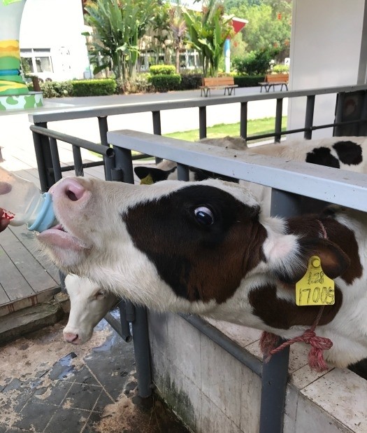 这里喂养的动物有奶牛,能看看机器、人工挤牛奶的过程,还能给小奶牛喂奶,10块钱喂一次。它们丰富的表情让大人小朋友都觉得很萌很可爱。