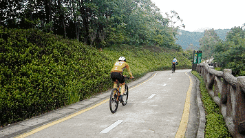 银湖绿道连接龙华、龙岗、福田、罗湖四个区,加上全程铺设有水泥路,没有汽车行驶,在这骑山地自行车,安全性妥妥的!