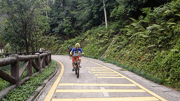 从银湖山郊野公园大门上来,前面约5公里都是上坡路,为了避免体力不支,坡度较高的地段,潮粉可以扶车上去。等到下坡地段,就可以爽歪歪地骑下去啦~