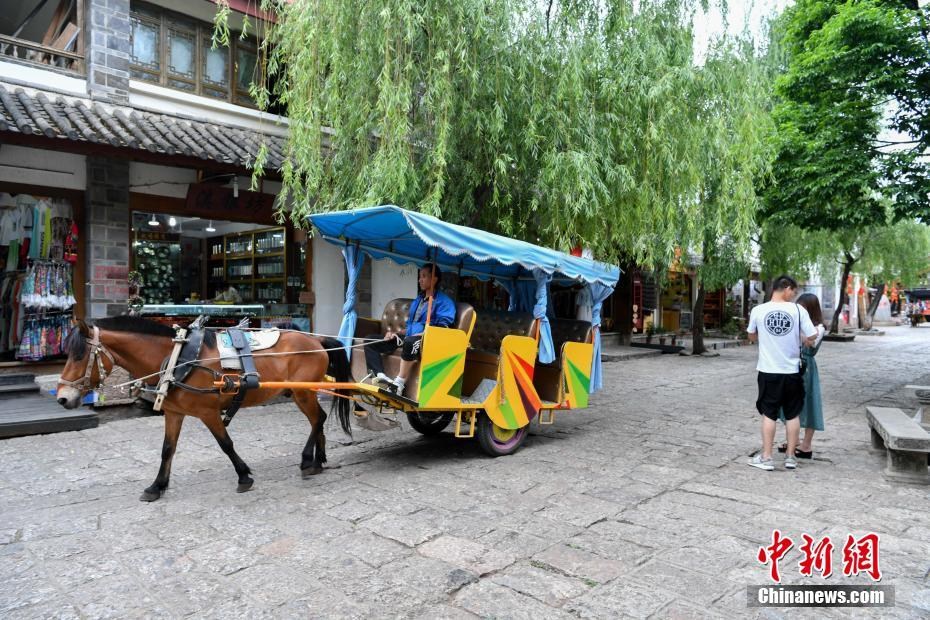 5月24日,少量游客在丽江束河古镇内游览。今年4月,被称为“最严整治令”的《云南省旅游市场秩序整治工作措施》正式实施。据束河古镇内的商贩介绍,自新规实施以来,束河古镇内的低价团已经绝迹。中新社记者 任东 摄