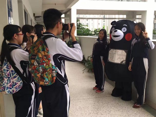 距离高考越来越近,日前,一只“重本熊”在深圳第二外国语学校出没,寻找高三的学生给予熊抱。二外团委书记许凡老师告诉记者,这是二外学长团策划的活动,希望借此活动给高三的学生们一些鼓励和打气。由学长团成员穿上熊熊的玩偶服,并在胸前挂上手绘的“重本”牌子,在校园内寻找高三学生给予他们一个熊抱并合影。“重本熊”所到之处,无不欢声笑语,成为了校园的“头号明星”。