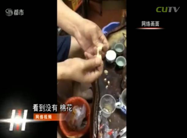 视频中有人将自己买回来的一袋肉松饼拿水浸泡,竟然怀疑这肉松是“棉花”做的,这事儿到底是真是假?来看记者的调查。