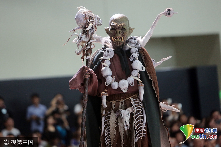 在山东工艺美术学院2017届毕业生就业推荐会上,一件由毕业生创作设计的“僵尸装”走上T台,其逼真的视觉效果与模特入戏演出,让在场观众发出连连尖叫。