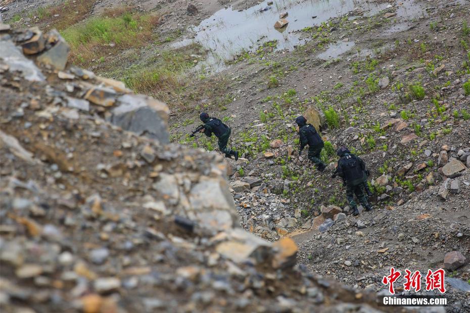 5月24日,特战队员在山林地开展搜索。当天,武警浙江总队组织直属、舟山、宁波、台州等四个支队特勤分队在舟山开展第二季度“魔鬼周”极限训练。据悉,此次“魔鬼周”训练设置了武装奔袭、山地越野、荒岛求生、夜间行军和各种枪械射击等课目。中新社记者殷福军 摄