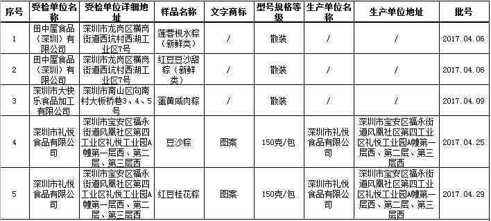 附:2017年(粽子)专项食品安全抽样检验合格食品一览表