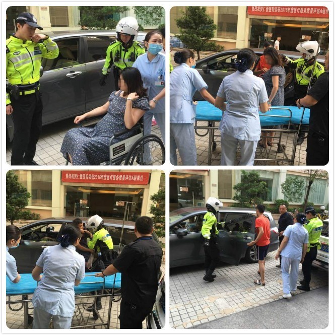 8时16分左右,福田交警大队路面巡逻的铁骑接到孕妇乘坐的车辆,铁骑队员滚动护送,8时20分许,将车辆顺利带至仁爱医院。