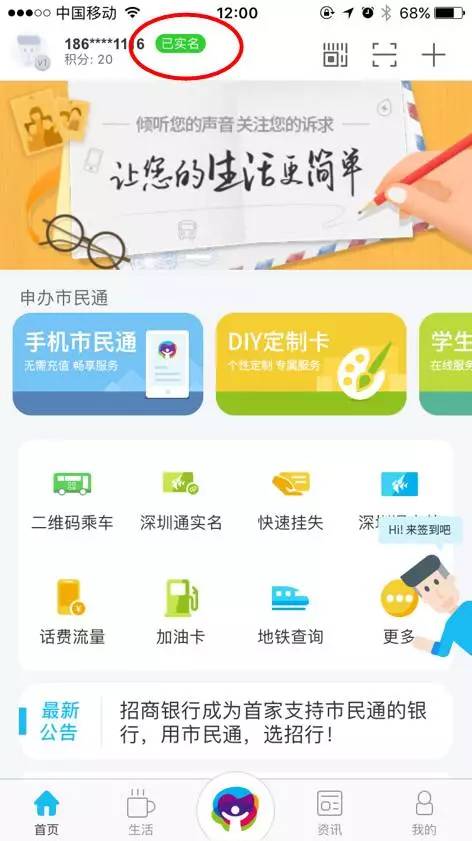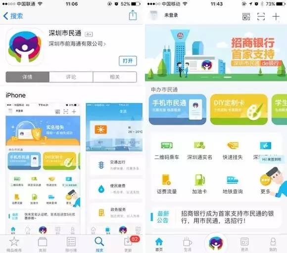 在应用商店下载“深圳市民通”APP,打开可以清晰地看到APP所提供的服务,包括二维码乘车、绑定深圳通、快速挂失、深圳通充值、话费流量、加油卡、地铁查询等一系列功能服务。