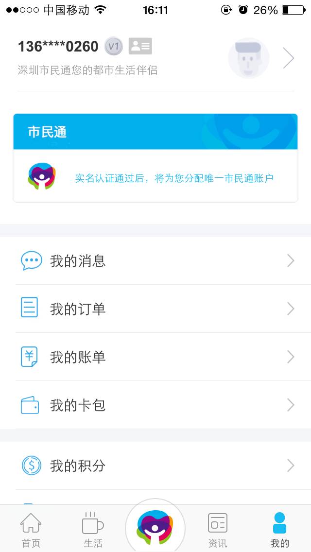 登录市民通APP,首页左上角显示您的状态为“未实名”,点击右下角“我的”,进入我的主页。