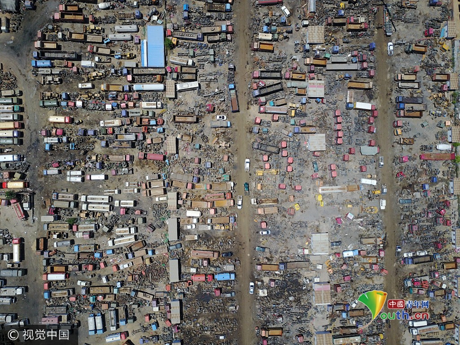 新闻提要 从空中俯瞰宁夏灵武市再生资源循环经济示范区,处处放置的报废汽车等废旧物资宛如“汽车墓地”。