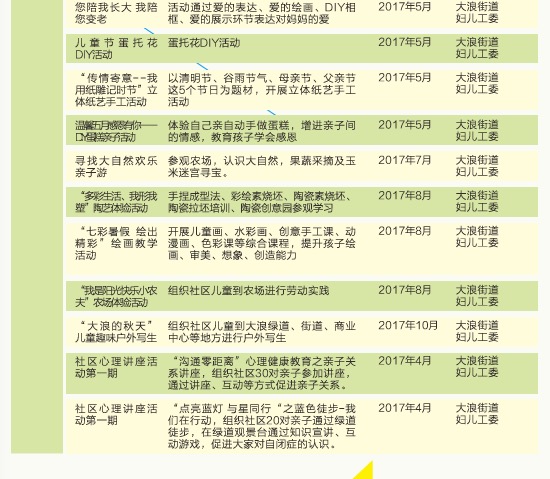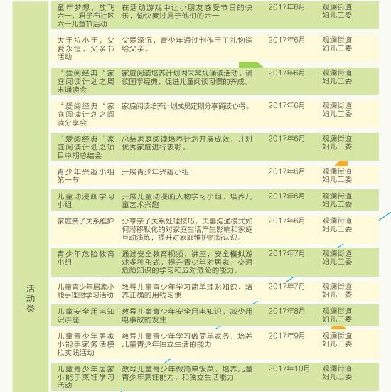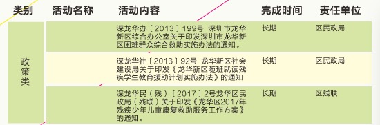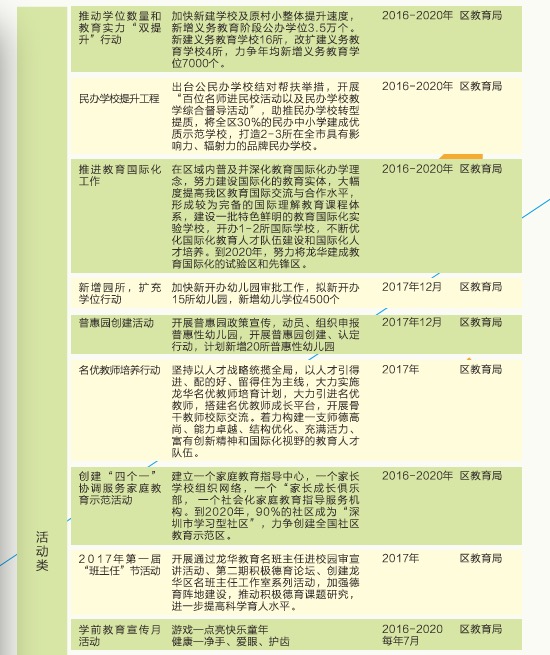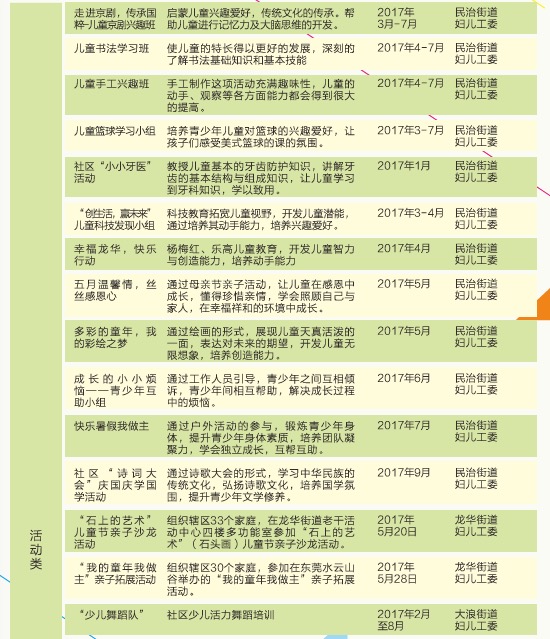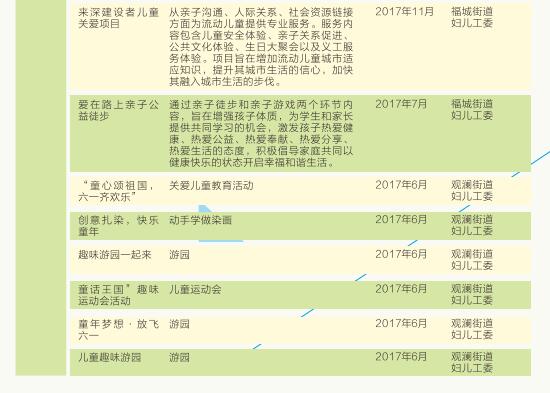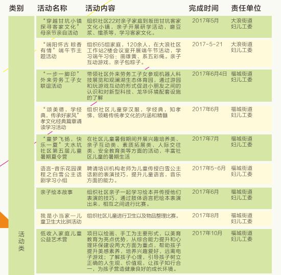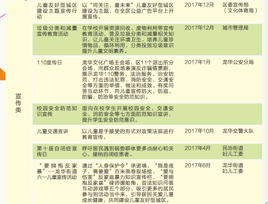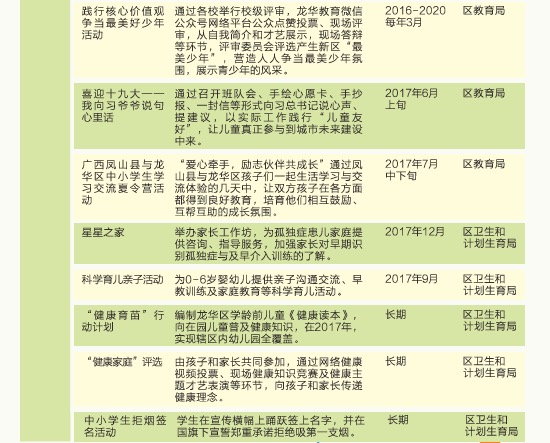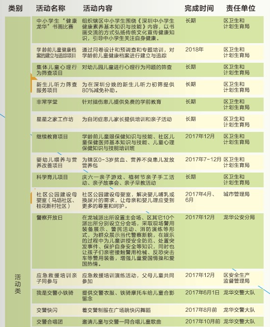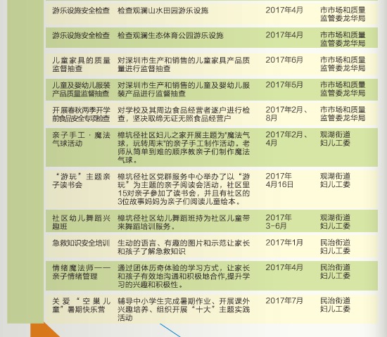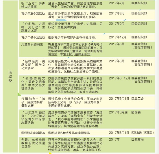 2017年深圳市龙华区儿童友好型城区建设系列行动一览表